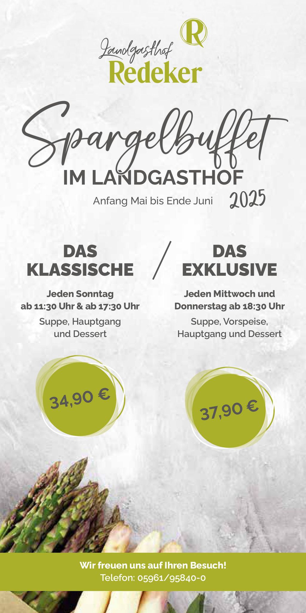 Ab Do., den 1. Mai 2025 beginnen unsere beliebten Spargelbuffets: